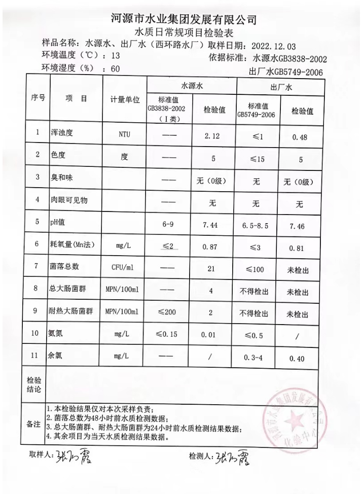 2022年12月3日水質(zhì)檢驗(yàn)報(bào)告