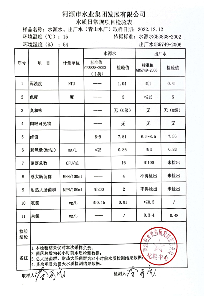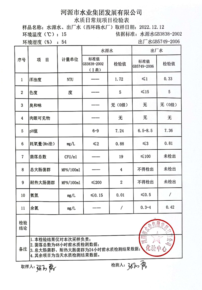 2022年12月12日水質(zhì)檢驗(yàn)報(bào)告