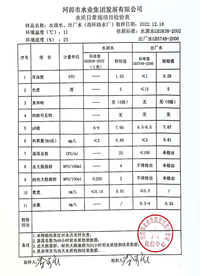 2022年12月18日水質(zhì)檢驗報告