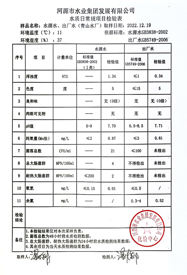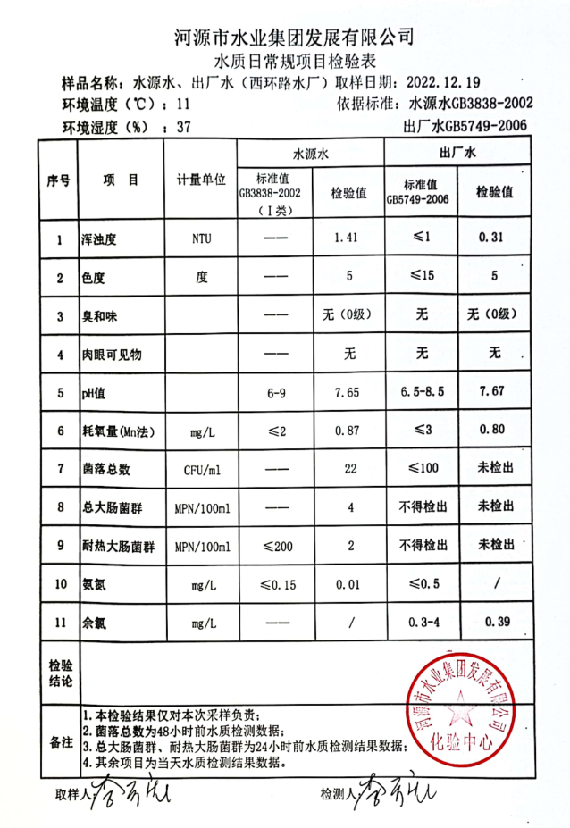 2022年12月19日水質(zhì)檢驗(yàn)報(bào)告