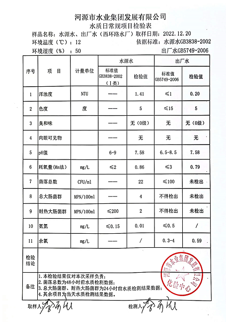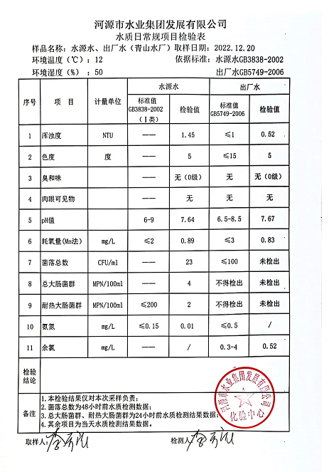 2022年12月20日水質檢驗報告