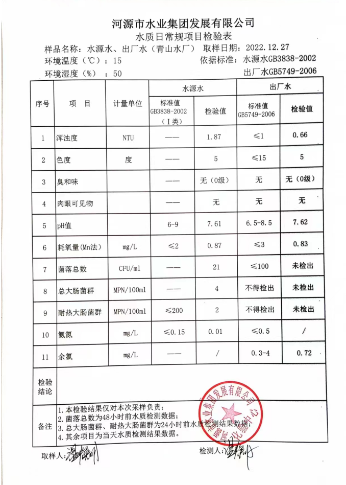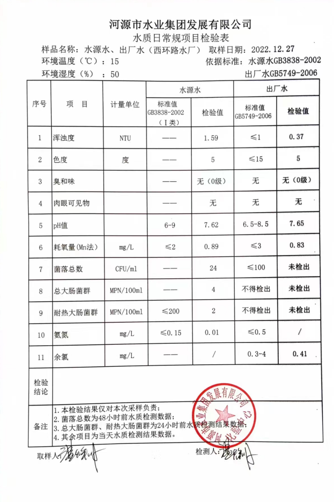 2022年12月27日水質(zhì)檢驗(yàn)報(bào)告
