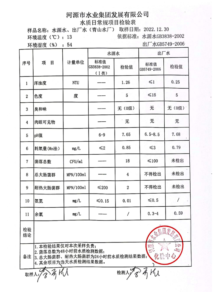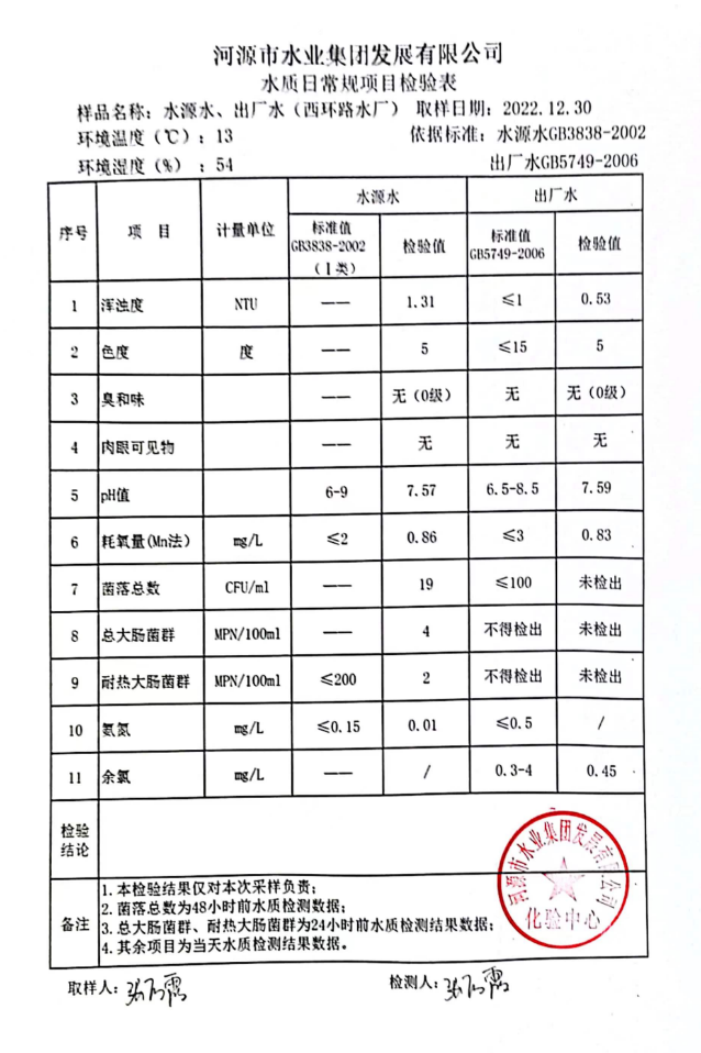 2022年12月30日水質(zhì)檢驗(yàn)報(bào)告
