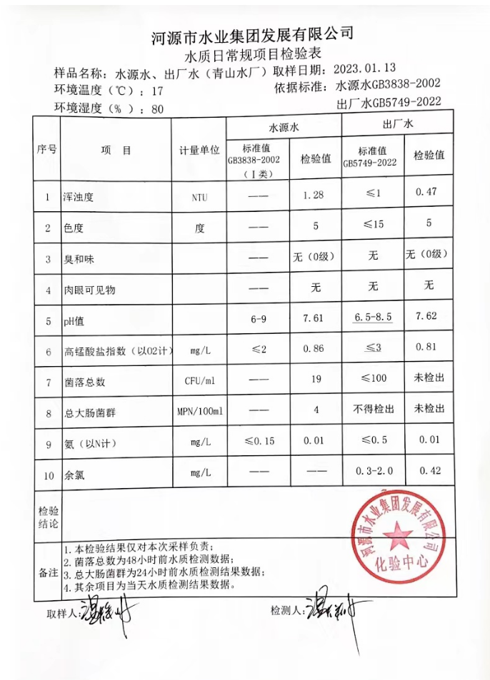 2023年1月13日水質檢驗報告