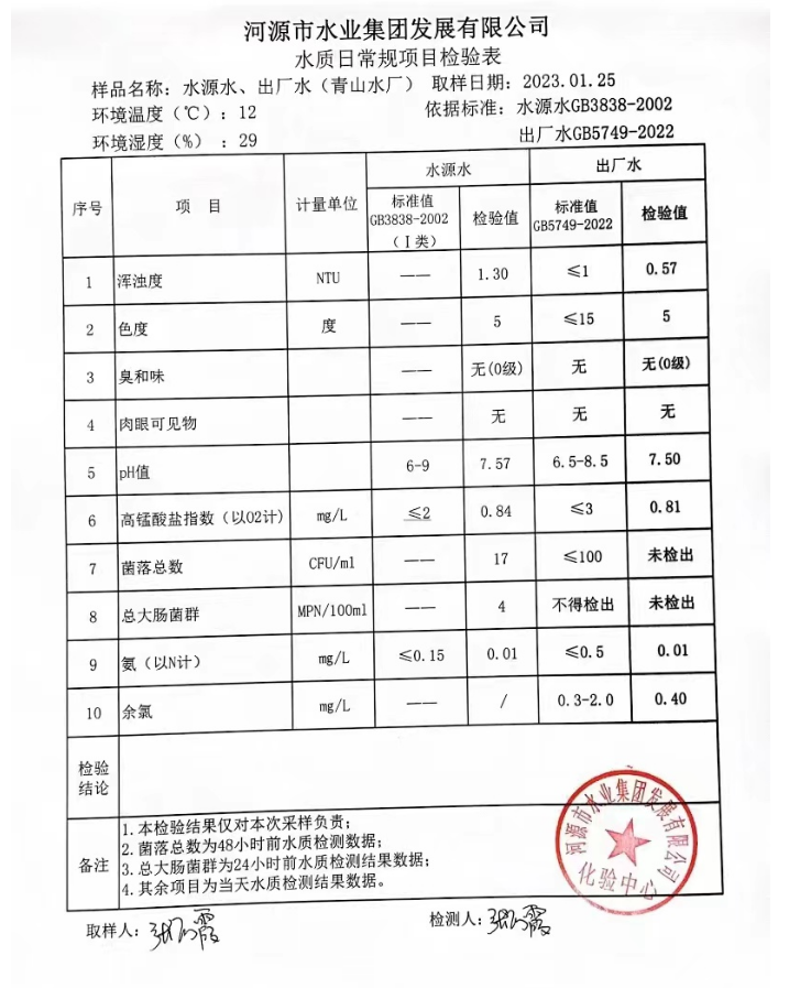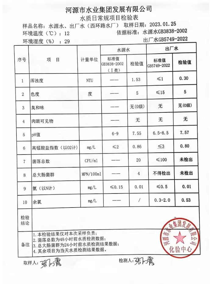 2023年1月25日水質(zhì)檢驗(yàn)報(bào)告