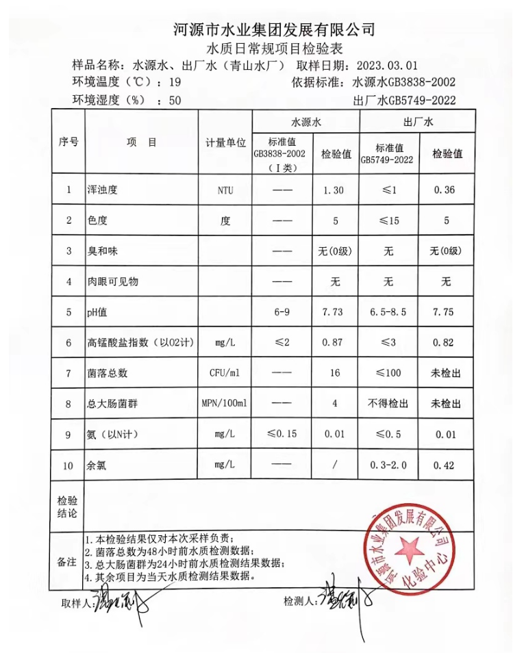 2023年3月1日水質(zhì)檢驗(yàn)報(bào)告