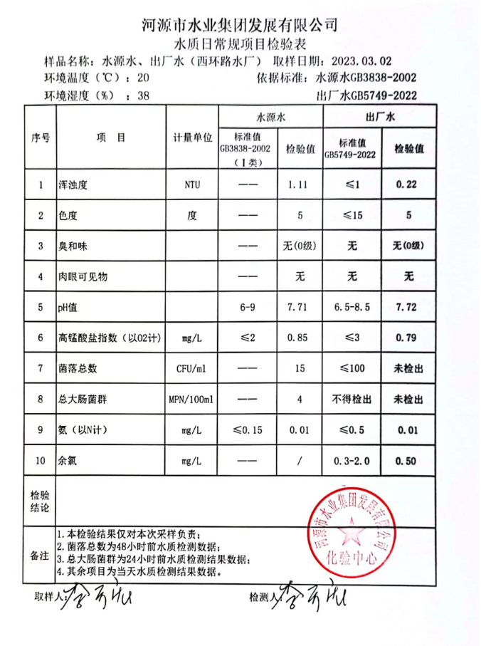 2023年3月2日水質(zhì)檢驗(yàn)報(bào)告