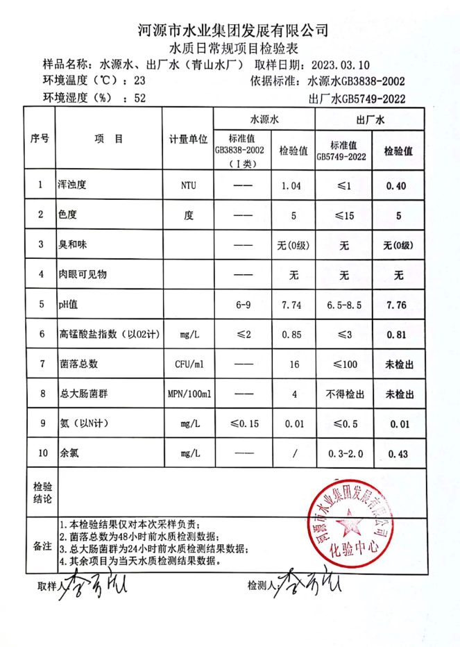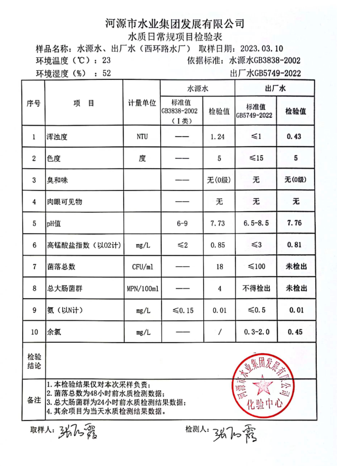 2023年3月10日水質(zhì)檢驗報告