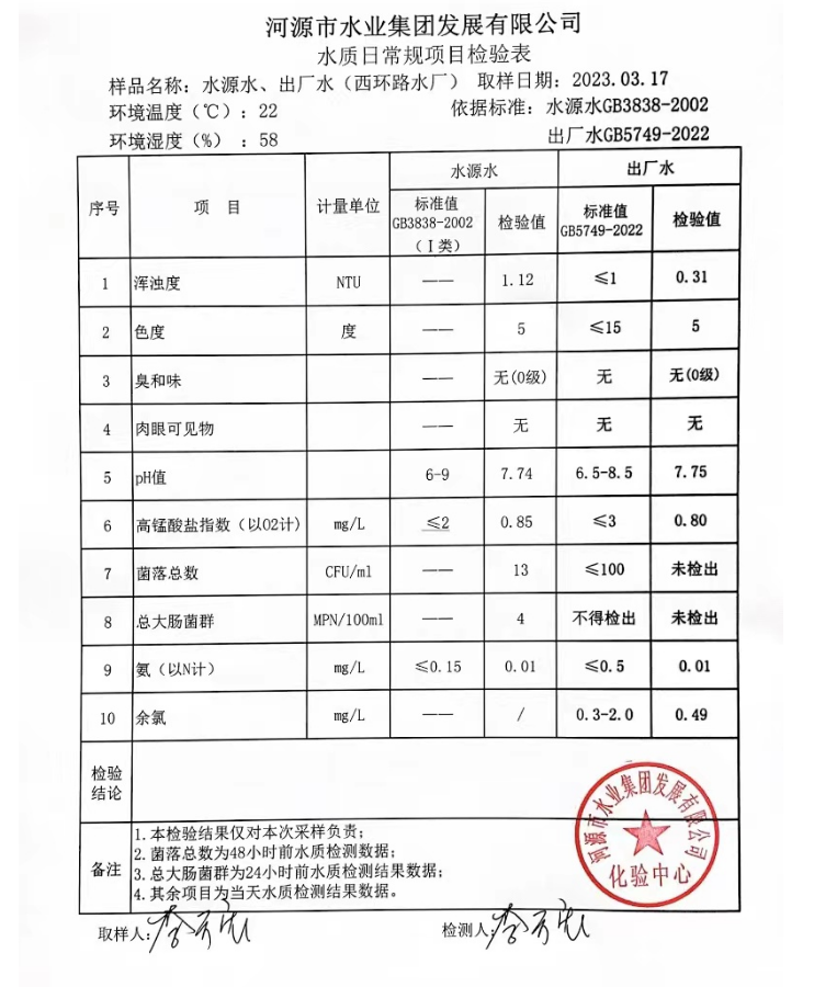 2023年3月17日水質檢驗報告