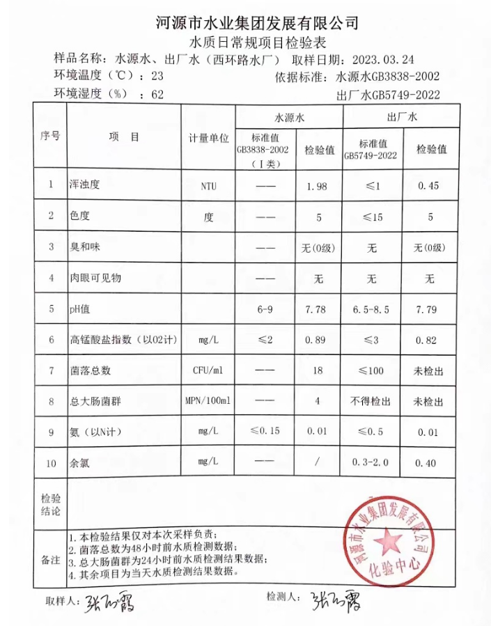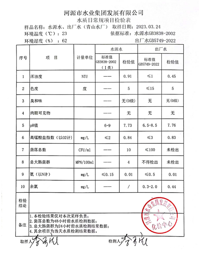 2023年3月24日水質(zhì)檢驗(yàn)報(bào)告