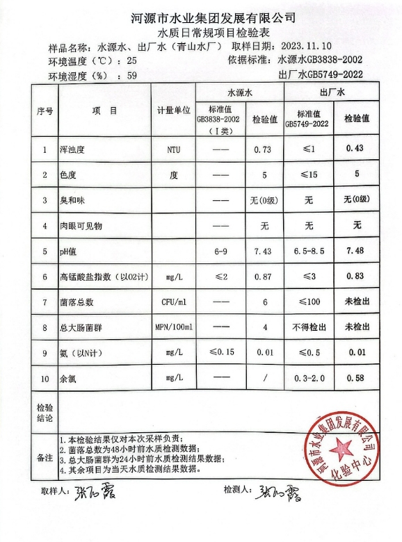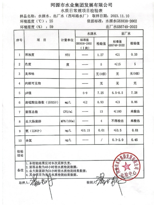 2023年11月10日水質(zhì)檢驗(yàn)報(bào)告 ???