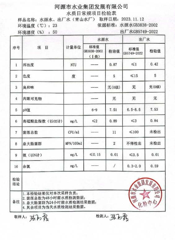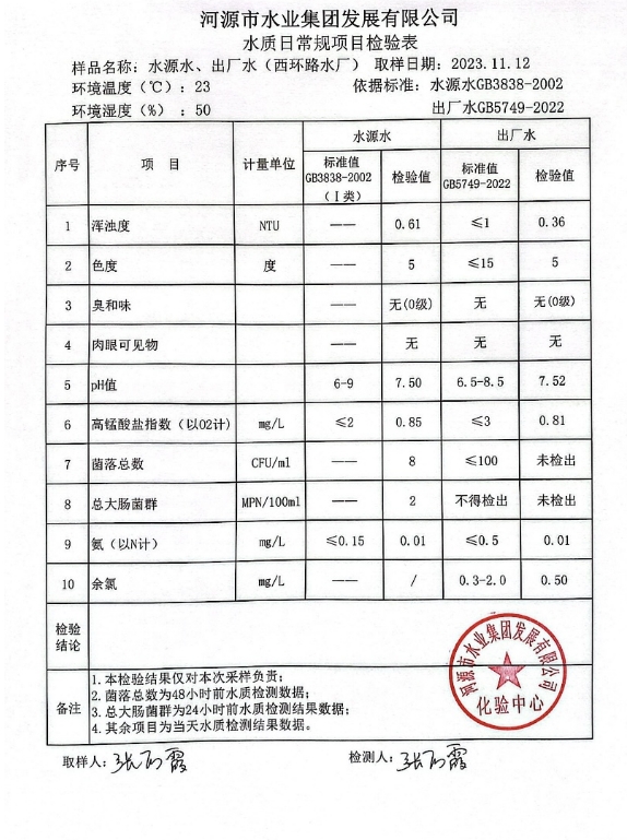 2023年11月12日水質(zhì)檢驗報告 ???
