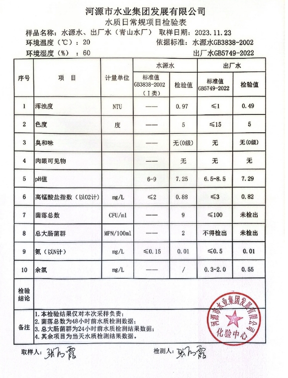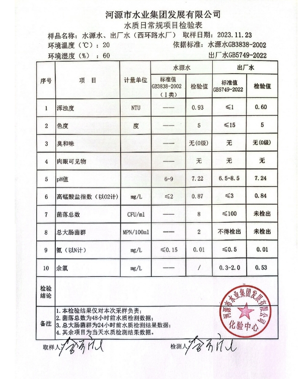 2023年11月23日水質(zhì)檢驗報告 ???