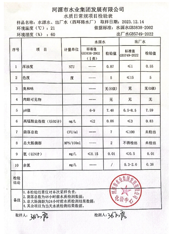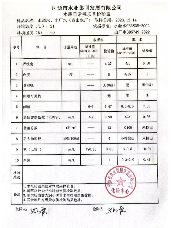2023年12月14日水質(zhì)檢驗(yàn)報(bào)告 ???