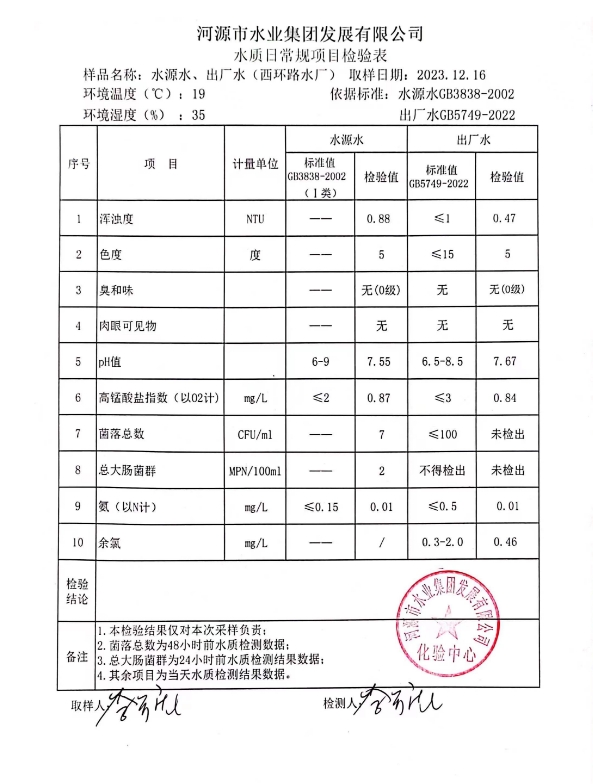 2023年12月16日水質(zhì)檢驗(yàn)報(bào)告 ???