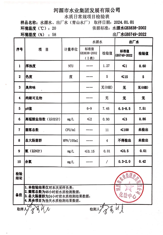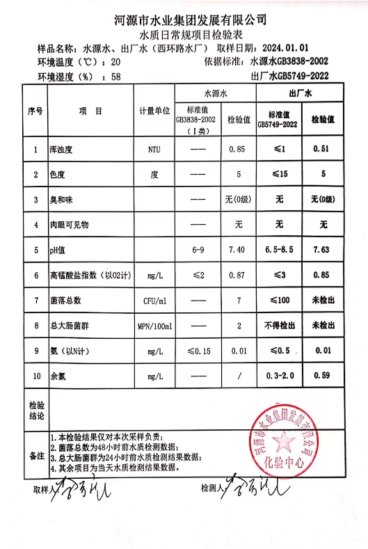 2024年1月1日水質(zhì)檢驗報告 ???