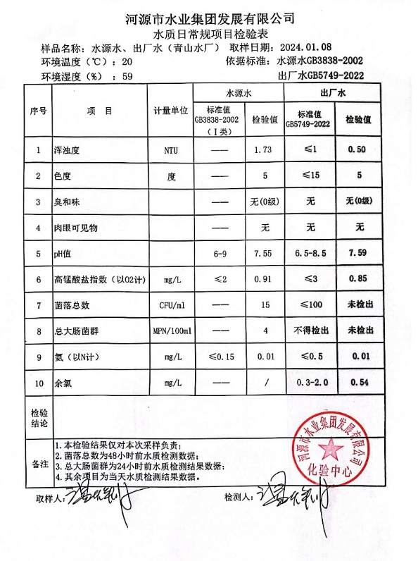 2024年1月8日水質(zhì)檢驗(yàn)報(bào)告