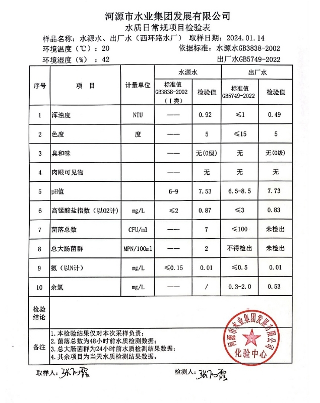 2024年1月14日水質(zhì)檢驗(yàn)報(bào)告 ???