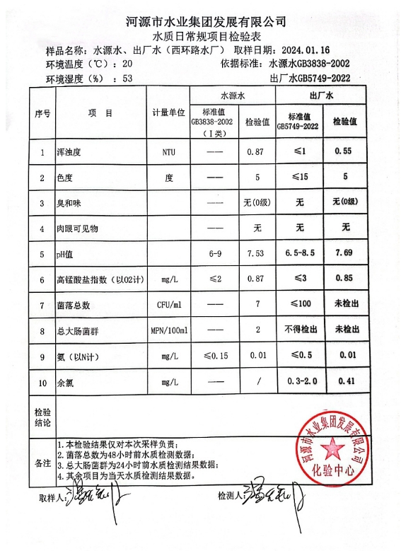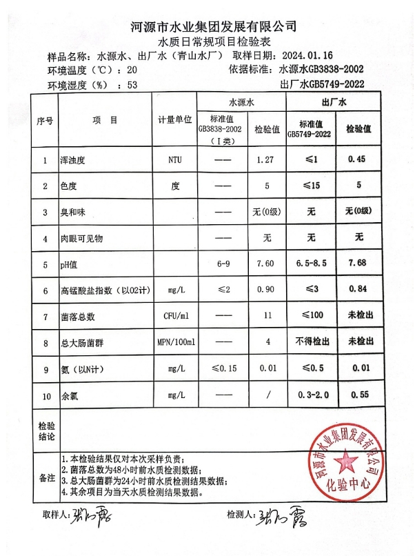 2024年1月16日水質(zhì)檢驗報告 ???