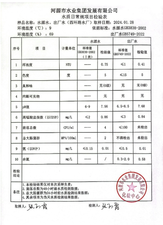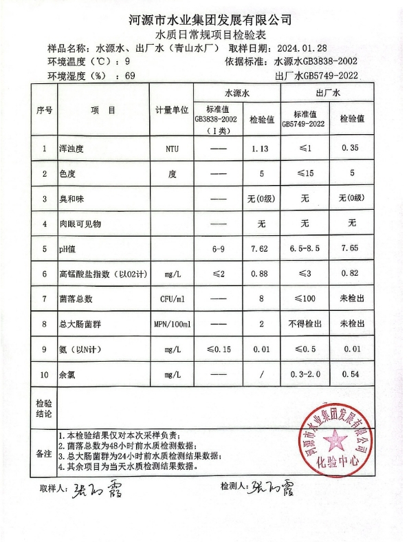 2024年1月28日水質(zhì)檢驗報告 ???