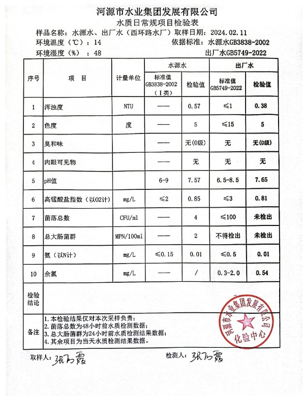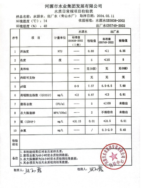 2024年2月11日水質(zhì)檢驗報告 ???