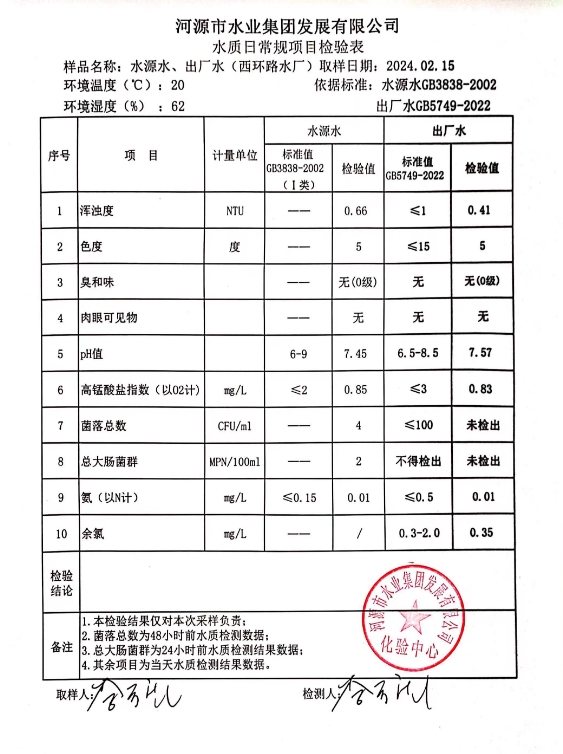 2024年2月15日水質(zhì)檢驗(yàn)報(bào)告 ???