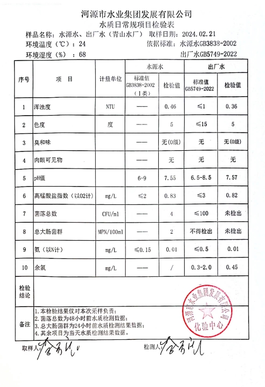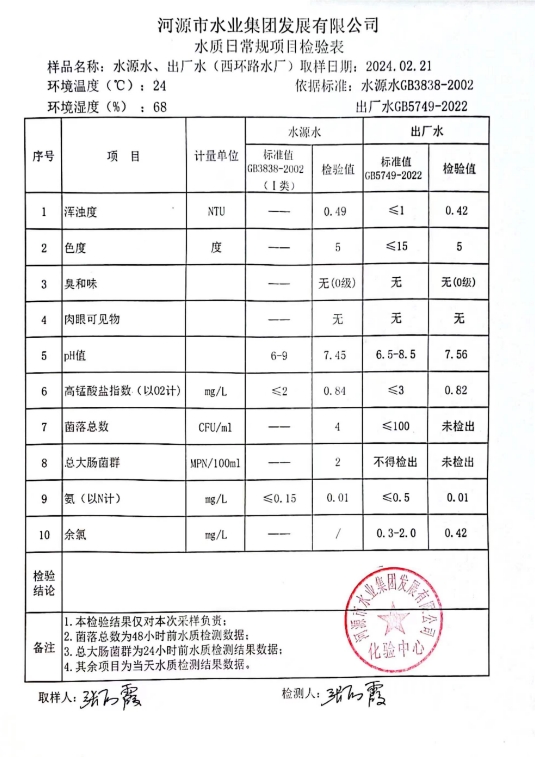 2024年2月21日水質(zhì)檢驗報告 ???
