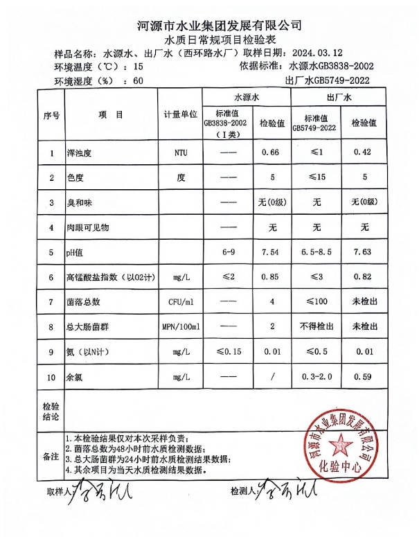 2024年3月12日水質(zhì)檢驗報告 ???