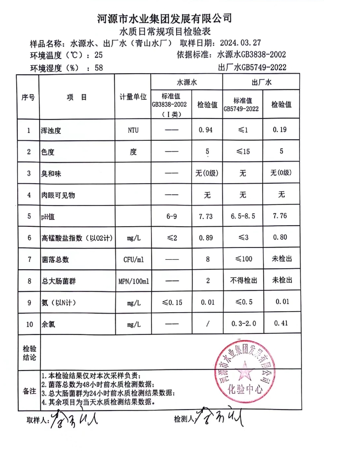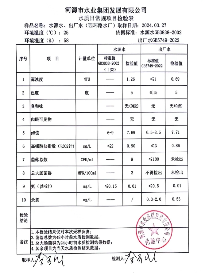 2024年3月27日水質(zhì)檢驗(yàn)報(bào)告