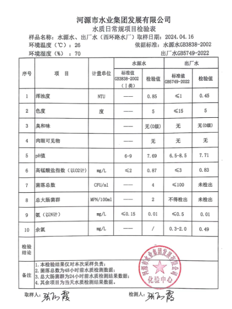 2024年4月16日水質(zhì)檢驗報告