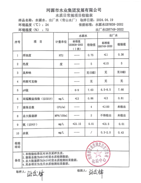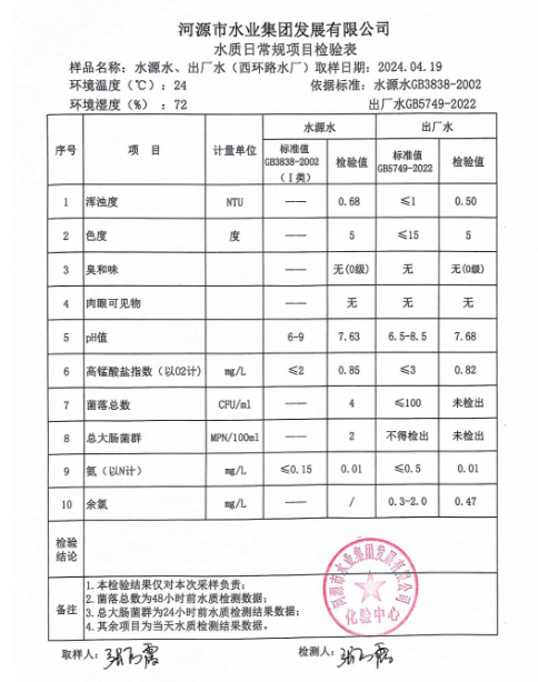 2024年4月19日水質(zhì)檢驗(yàn)報(bào)告