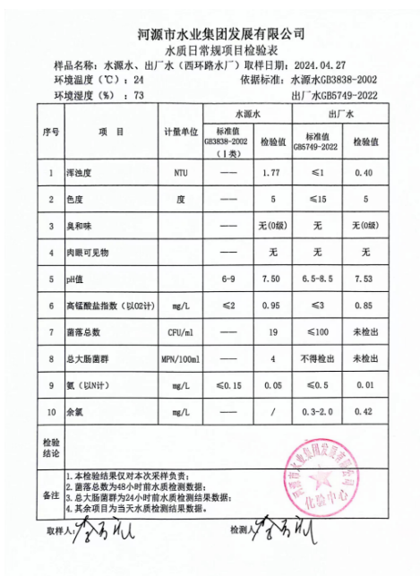 2024年4月27日水質(zhì)檢驗(yàn)報(bào)告 ???