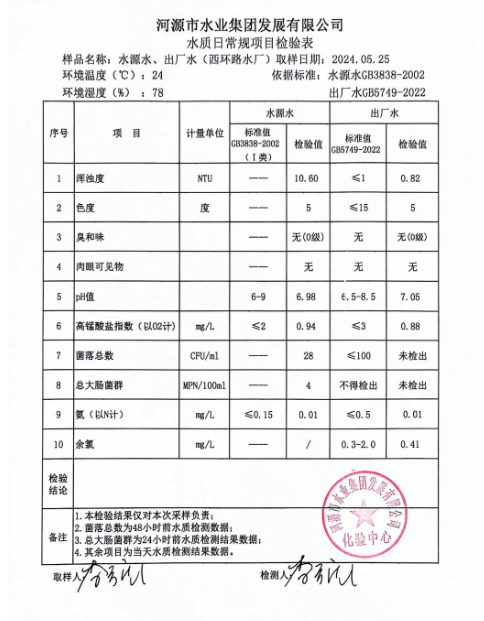 2024年5月25日水質(zhì)檢驗(yàn)報(bào)告 ???