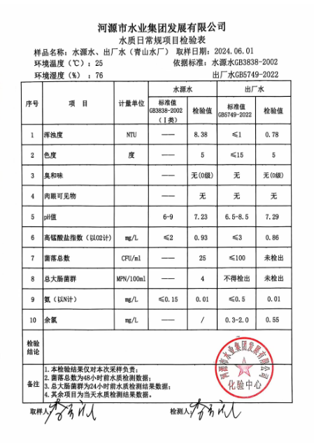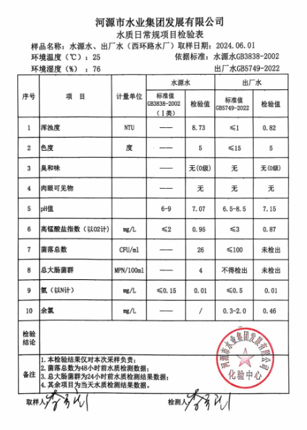 2024年6月1日水質(zhì)檢驗報告 ???