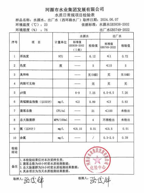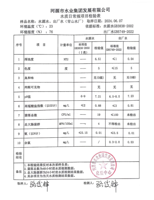 2024年6月7日水質(zhì)檢驗(yàn)報(bào)告 ???