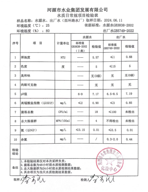 2024年6月11日水質(zhì)檢驗(yàn)報(bào)告 ???