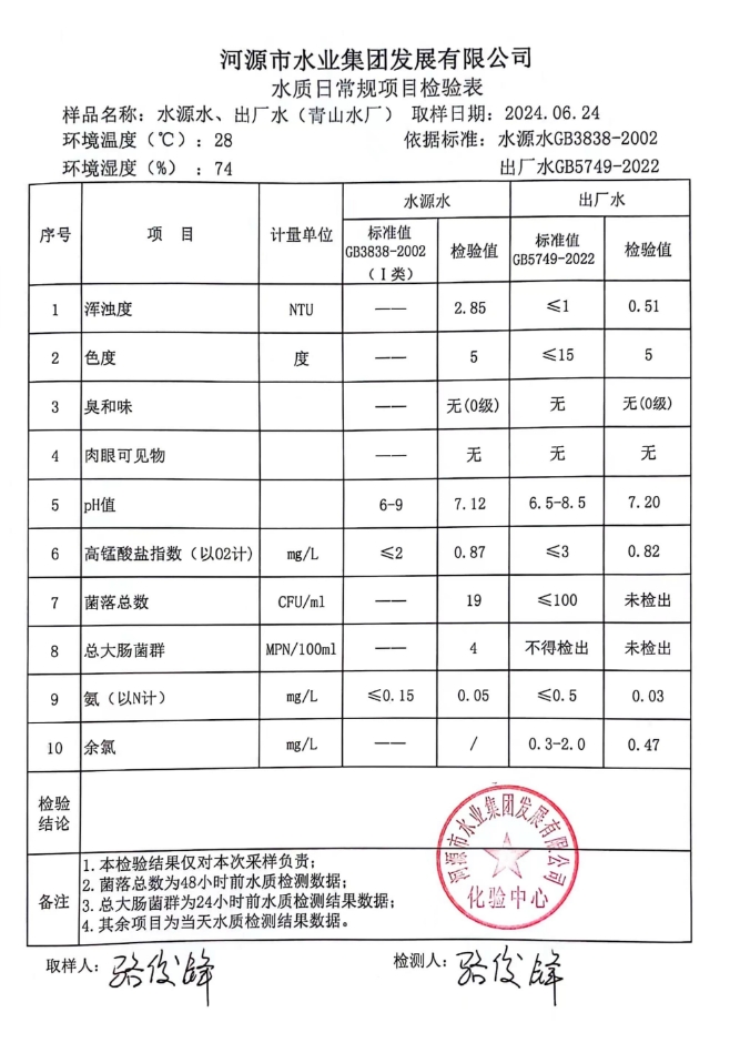 2024年6月24日水質(zhì)檢驗(yàn)報(bào)告