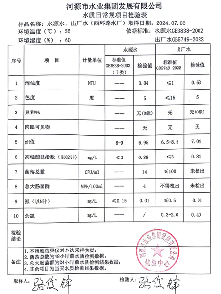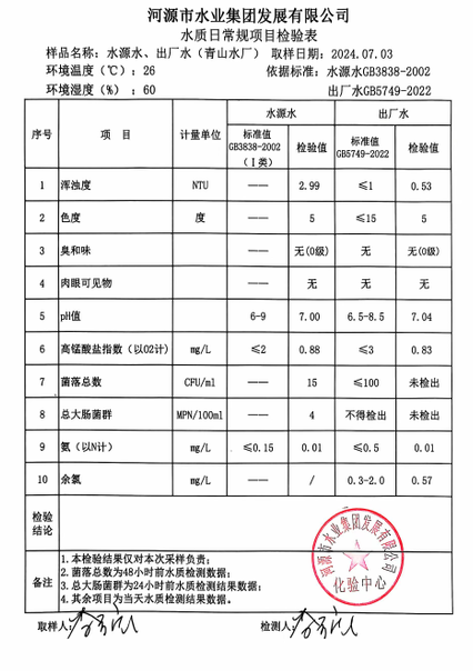 2024年7月3日水質(zhì)檢驗(yàn)報(bào)告