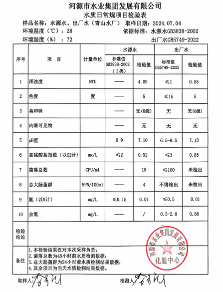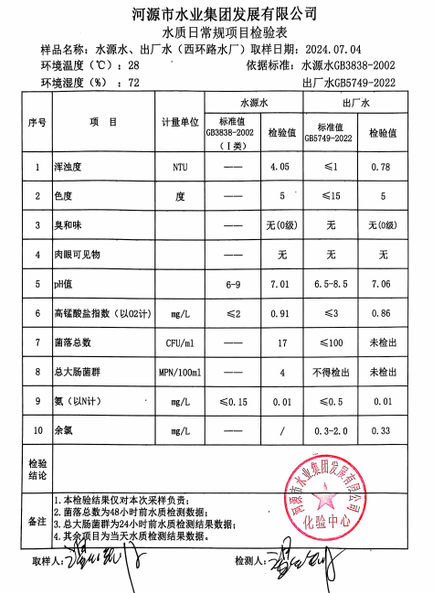 2024年7月4日水質(zhì)檢驗報告
