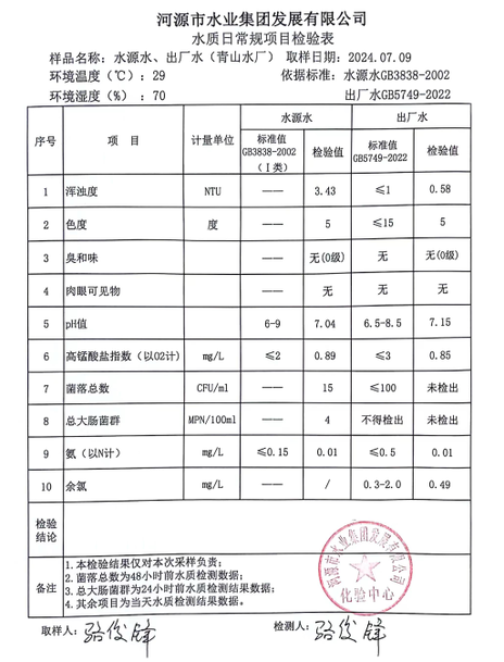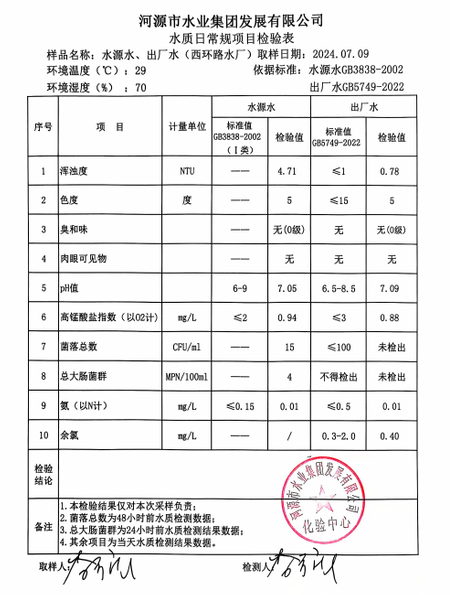 2024年7月9日水質(zhì)檢驗(yàn)報(bào)告