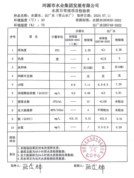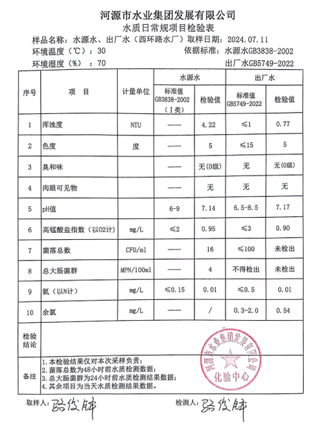 2024年7月11日水質(zhì)檢驗(yàn)報(bào)告