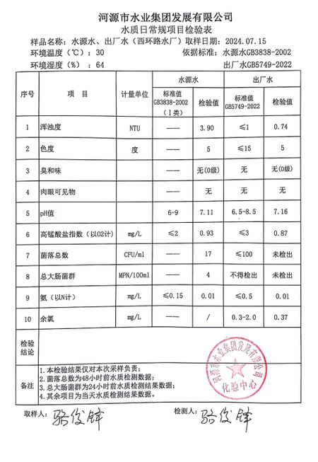 2024年7月15日水質(zhì)檢驗報告