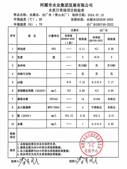 2024年7月18日水質檢驗報告