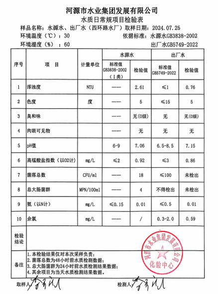 2024年7月25日水質檢驗報告