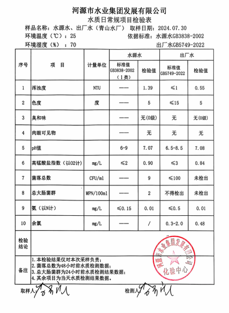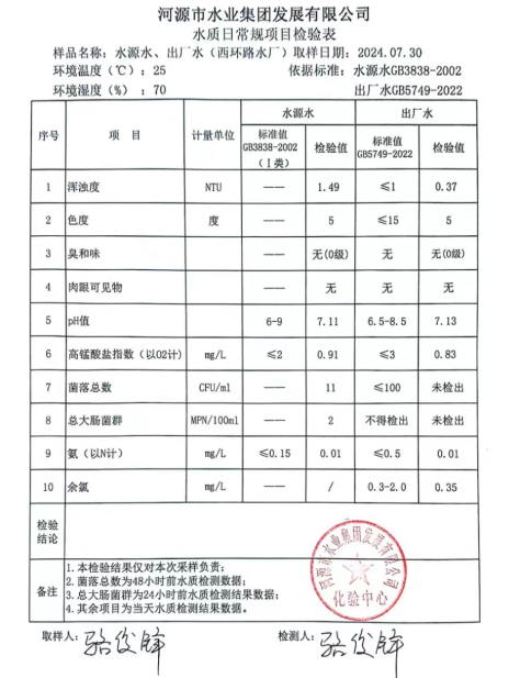 2024年7月30日水質(zhì)檢驗(yàn)報告