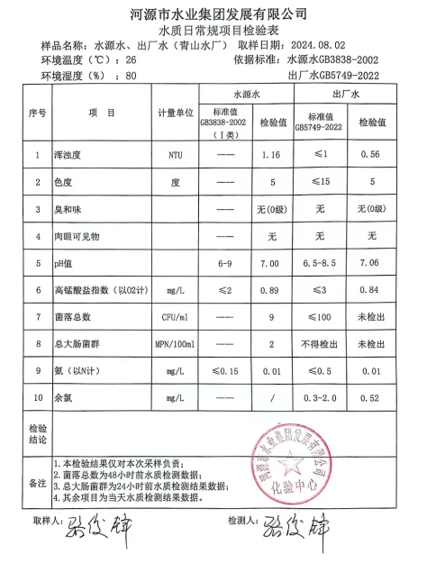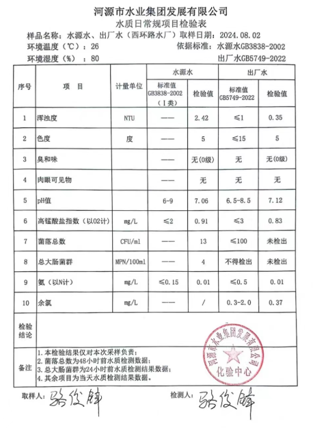 2024年8月2日水質(zhì)檢驗報告