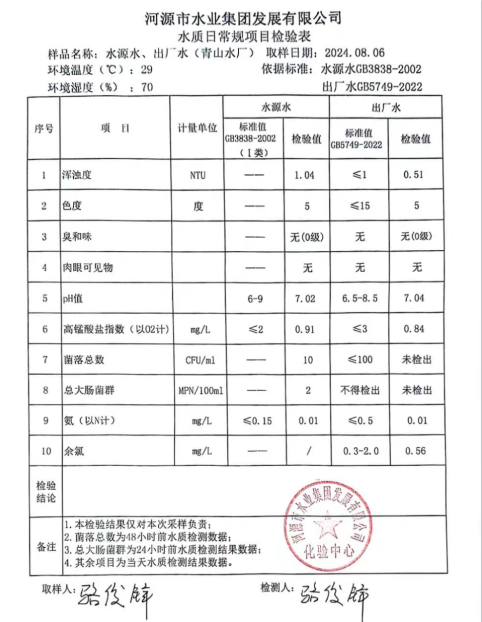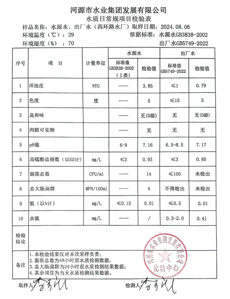 2024年8月6日水質檢驗報告