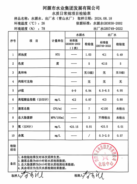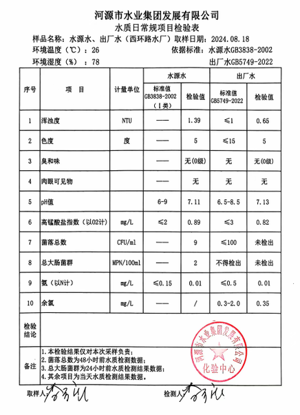 2024年8月18日水質檢驗報告