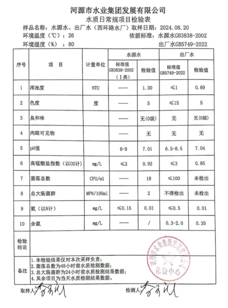 2024年8月20日水質(zhì)檢驗(yàn)報(bào)告