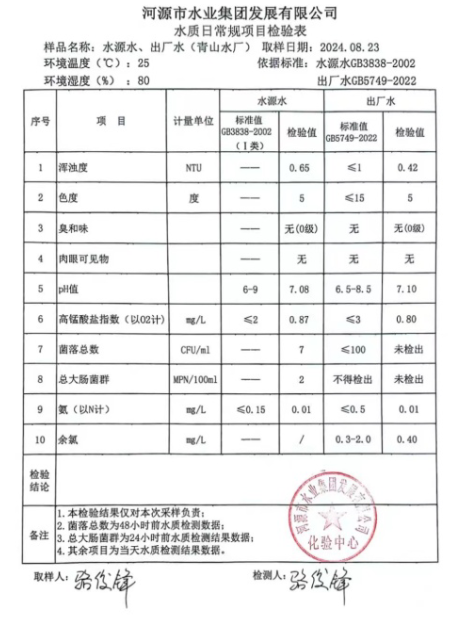 2024年8月23日水質(zhì)檢驗(yàn)報(bào)告